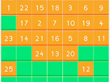 49 益智游戏。你的目标是 49!你能做到吗?把第一个数字放在你想要的任何位置!接下来的数字只能从上一个数字开始,沿四个方向(上下左右)中的一个方向跳过两格,然后再垂直于该方向,向左或向右移动一格来放置。