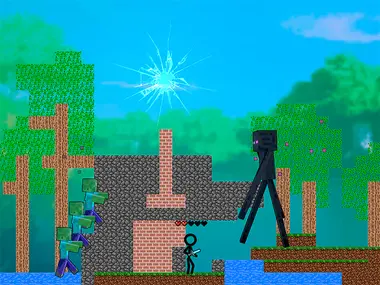 Animation vs Minecraft 是一个有趣的冒险格斗游戏。我们都知道我们最喜欢的动画火柴人,他生活在电脑世界里。另一个最棒的Minecraft英雄,他们都想征服对方的世界。所以帮助小动画人保卫他的世界,反击并摧毁Minecraft。用武器和服装升级动画火柴人,你也可以用自己的砖块和方块建造自己的防御世界,并将你的世界截图分享到你的账户,尽可能多地摧毁Minecraft并挑战你的朋友。更多冒险游戏尽在y8.com。