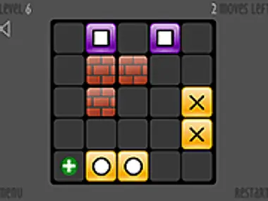 连接相同类型的方块。记住,只允许移动5次。点击一个方块来选中它,然后点击它周围的某个位置,以将方块朝该方向移动。试着组成一些对子吧!
