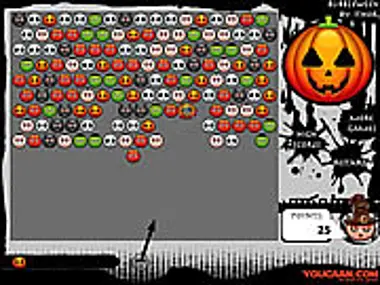 Shoot Halloween bubbles to match 3 or more of the same type. Try to clear the board with the fewest points possible.