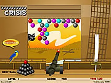 The aim of the game is to clear all the cannonballs at the top of the screen by firing up a cannonball of the same color to create a touching group of three or more.