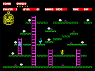 玩家控制哈利(Harry),目标是在倒计时结束前收集每个关卡中的十二个蛋。凶残的鸵鸟在平台和梯子上漫无目的地游荡。玩家还可以乘坐某些关卡中的电梯。如果哈利碰到鸵鸟、掉入关卡底部的洞中,或者电梯将他带到关卡顶部,他就会失去一条生命。此外,在鸵鸟吃掉它们之前,玩家可以收集几堆种子,以增加分数并暂时停止倒计时。八个关卡结束后,游戏会重新开始,出现一只自由追逐哈利的鸭子,但没有鸵鸟;然后第三次也是最后一次重新开始,鸭子和鸵鸟一同行动;这使得总共有 24 个关卡。玩家有五条生命,每获得 10,000 分就会奖励一条额外生命。