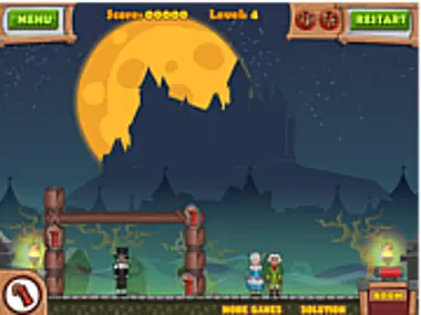 Detonate each medieval structure to destroy the humans within, but be careful not to destroy any of the zombies along the way!