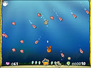 A top-down underwater shooter. Your a crab, now beefin up and shoot the attacking fish.