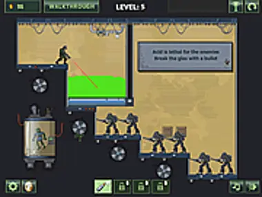 在这款基于物理的益智游戏中,利用跳弹射击、爆炸和酸液来消灭坏人。打破玻璃,并击中TNT引爆器!