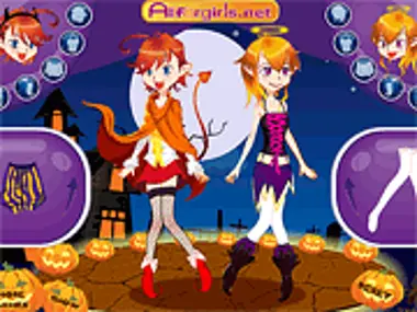 万圣节快到了。作为我们魔鬼双胞胎姐妹们最盛大的节日,她们准备在黑暗城堡里举办一场派对,好好庆祝一番。请帮她们打扮得又可爱又酷,然后让我们跟着她们去派对,看看会有什么惊喜或搞怪吧!