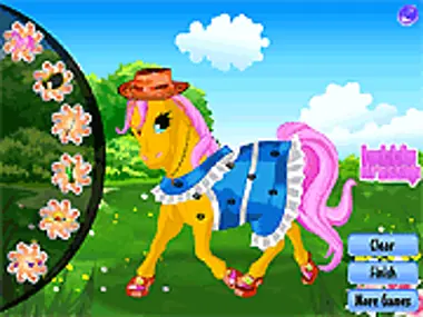 是时候带着这只可爱的小马去后花园兜风了,但在此之前,我们首先要用它华丽的衣服把它打扮一番,但别忘了先给它换个颜色,这样衣服才能和它的身体颜色搭配得更协调。因为这只小马看起来像只皇家小马,你可以给它戴上新帽子,也可以选择一双新鞋子。别忘了配饰和它的身体彩绘贴纸哦!