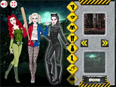 这是一年中最诡异的夜晚,万圣节之夜,哈莉·奎茵和她的朋友们正准备在街头制造惊吓,做些“坏事”。想加入这场乐趣吗?点击《Harley Quinn And Friends》女生游戏的开始按钮,完成第一个任务,并收集所有成就。为了解锁我们在这款免费女生游戏中为你准备的第一个成就,你需要为每个角色选择一些惊艳的服装。当然,第一个要体验你高超造型技巧的将是哈莉·奎茵。浏览她衣柜里琳琅满目的上衣、下装和连衣裙,选择你最喜欢的一件来打扮她。然后寻找最棒的配饰来完成她惊艳的造型,为她做头发,也别忘了为她化妆。干得漂亮,女士们!现在,让我们看看你能为她那位同样迷人的朋友——毒藤女——打造出怎样别致的造型。绿色是她的标志性颜色,所以我们确保你会在她的衣柜里找到很多绿色服装… 尽情搭配你最喜欢的单品,打造出令人惊叹的造型吧。第三位加入队伍的可爱成员是猫女。在这位角色的衣柜里,你会发现一系列可爱的动物纹和黑色服装,还有配套的配饰、鞋子和头饰… 尽情选择你最喜欢的吧。瞧,女孩们,这三位朋友现在准备好去“捣乱”这座城市了 :)