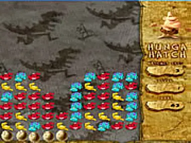 Click the dinosaurs of the same color to make their blocks disappear.