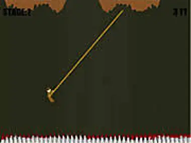 You navigate through each stage by using the mouse to shoot your rope at a fixture on the ceiling. But beware of the floor coz once fallen, you will die instantly. Try and get your momentum going so you can go as far as possible. Release the mouse button once you have timed the swing right. You may also collect power-ups. Enjoy!