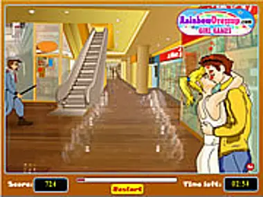 Stay on guard while these two teen lovebirds are having their romantic kissing sessions at the mall and see that they don't get spied!