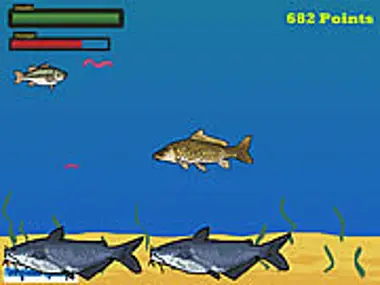 操控小鲈鱼尽可能地游得更远。你游得越远,得分就越多。尽量避开其他更大的鱼和鱼钩。吃虫子填饱饥饿条,吃小金鱼恢复生命值。