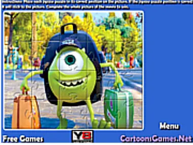 完成动画喜剧《怪兽大学》中麦克·华斯基大学第一天的拼图即可获胜。游戏设有两个难度等级。您可以选择20块或40块的拼图游戏。将每块拼图放到图片上的正确位置。如果拼图位置正确,它就会固定在图片上。