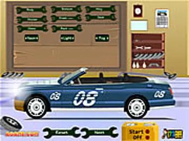 Design a classic sports car and then test it on the road! Click on the arrows to scroll through the options. Click the buttons for extra options. When you are ready, press Next to choose a location.