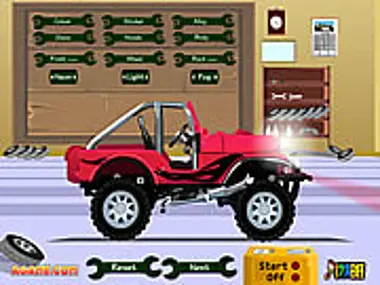 Design your favorite Jeep and then take it for a ride! Click on the wrenches to see the different Jeep options. Click on up or down to raise and lower the car. When you're done, click Next to choose the landscape of your choice for your ride.