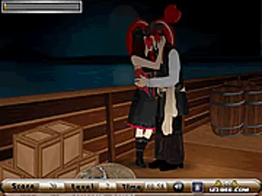 让身处被诅咒海盗船上的海盗情侣亲吻。避开按各自等级顺序出现的骷髅、闪电和月光造成的干扰。当它们出现时,请勿亲吻。在规定时间内填满亲吻进度条。