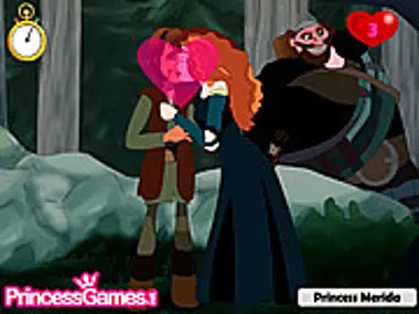 Princess Merida kissing the prince. Make sure she don't get caught.