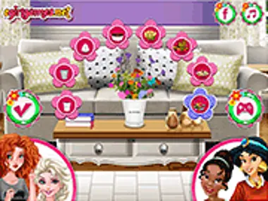 春天来了,准备好装饰房间并选择漂亮的服装。立即在Y8上开始这款美丽的游戏。她们整个冬天都在等待温暖的阳光,现在她们想尽情享受。首先,在客厅里添加一些鲜花,带来光明和芬芳。女孩们喜欢春天的野花,所以把一束花插在花瓶里,放在客厅的桌子上。在《Princesses Spring Activities》游戏中,你现在可以添加一张带粉色花朵的新地毯,带有精美春季图案的灯具,以及一张淡紫色调的精美墙纸。这个地方在春天看起来超级有趣,女孩们肯定知道如何装饰。玩得开心!