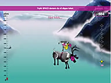 Jump off the cliff with your reindeer and perform tricks before you land in the water.