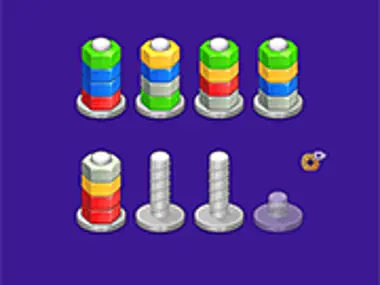 Screw Sorting 是一款有趣且引人入胜的益智游戏,你的目标是按颜色将螺丝分类。拧下螺丝,并将所有相同颜色的螺丝分组到它们指定的螺栓上。运用策略和精准操作,正确排列并完成螺丝分类,以完成每个关卡。你能应对挑战,实现完美有序的整理吗?