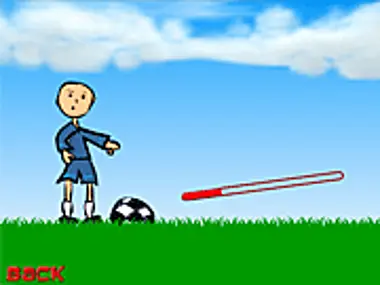 Kick the soccer ball at the right angle and as much power to get it as far as possible.