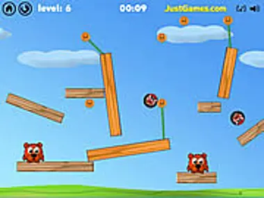Spiny Rollers 游戏是一款简单而有趣的物理游戏,你的目标是将屏幕上的所有小熊撞飞。你需要按正确的顺序剪断绳索以引发一系列物理变化,尽可能快地完成以获得更高的分数。