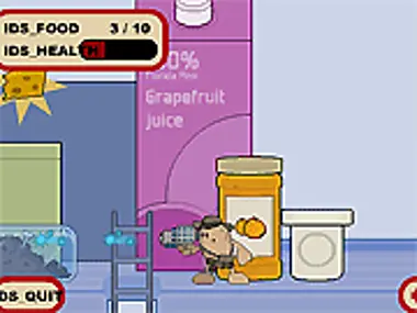 Side gaming action as a potato with a freeze ray gun.