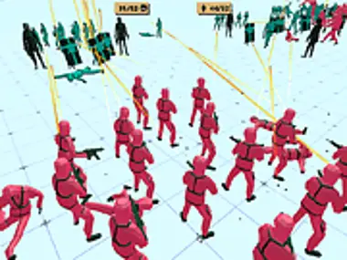 《鱿鱼战斗模拟器》是一款刺激的战争游戏,你可以在其中与刺激的《鱿鱼游戏》角色一起玩。制定你的策略,战胜敌人,这会非常有趣。只需建立你的军队,根据对手的军队进行部署,并让他们变得更强大。这场战争我们必须常胜,所以继续制定你的策略,完成所有关卡并赢得游戏。这款游戏会带给你很多乐趣。更多战争游戏尽在Y8.com!