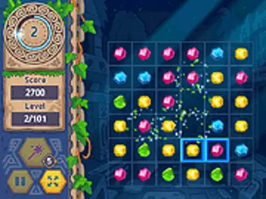 在《Temple Jewels》关卡中,您必须匹配3个或更多相同的宝石。游戏可能包含三角形、正方形或六边形图块。其中一部分图块是彩色的。在任意彩色图块上组合3个或更多相同类型的宝石,直到所有图块都被清除。在时间耗尽前,尽可能多地匹配宝石。在Y8.com尽情畅玩这款匹配游戏吧!