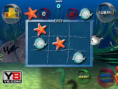 Tic Scary Toe 是一款非常有趣且引人入胜的益智游戏。在这个水生世界中畅游,与周围大量的水生生物一起玩井字棋。规则非常简单,只需将你的海星放在格子里,组成一行或一列即可获胜。体验这些奇妙的水生生物,尽情玩这款游戏,尽在 y8.com。