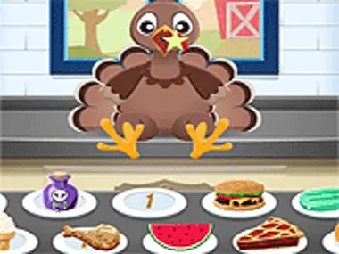 从各种食物中选择,例如胡萝卜、草莓、南瓜、西瓜、玉米、馅饼、甜甜圈、冰棒、软冰淇淋、杯子蛋糕、火腿、炸鸡、汉堡包、热狗和寿司!食物有不同的分数,所以请明智地选择!喂你的火鸡钟表以获得更多时间,但不要喂它毒药,否则本回合将结束。