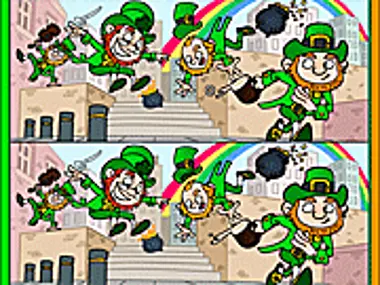 Find all the differences between the two pictures of leprechauns.