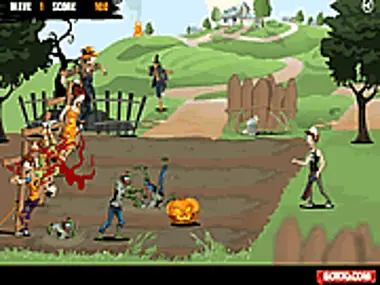 Zombie Master 是一款血腥射击游戏。他们绑架了许多村民。受惊的村民们被绑在十字架上,等待你的营救。你需要竭尽全力消灭正在接近的僵尸。如果你被可怕的僵尸碰到,它们会吸你的血。使用上下方向键移动,空格键射击。